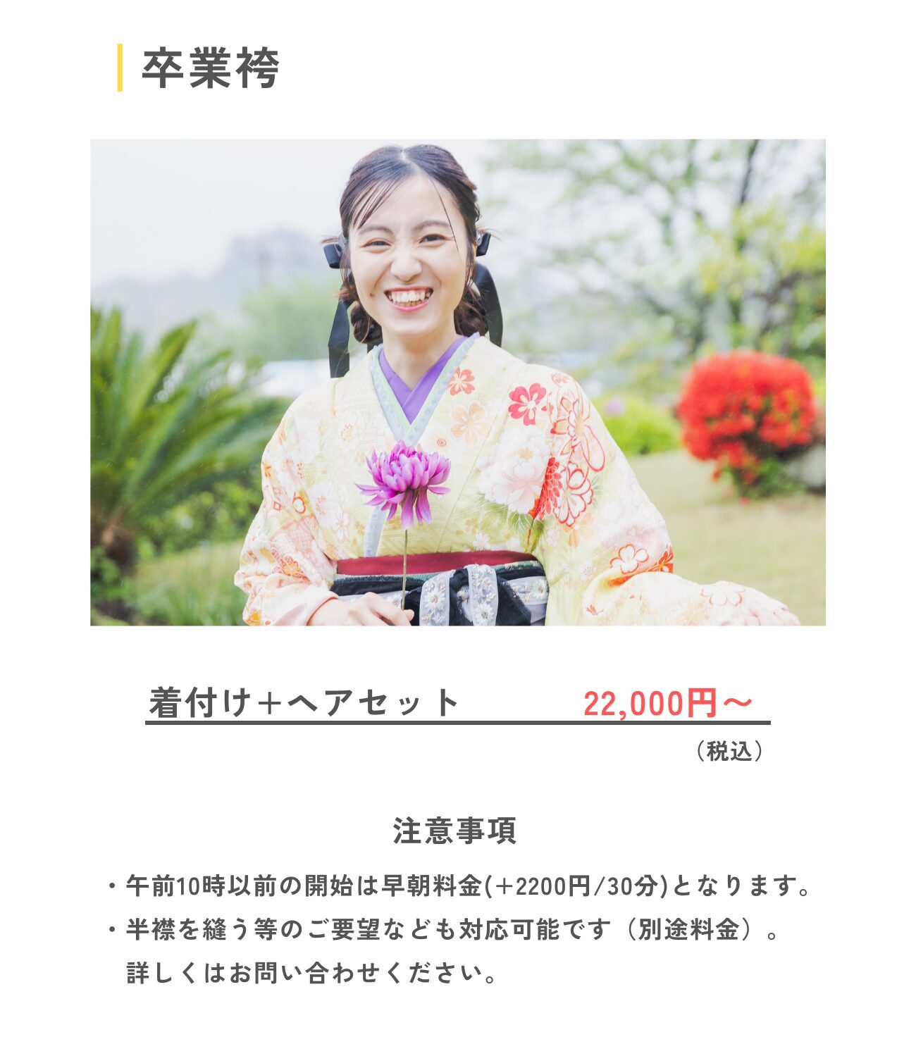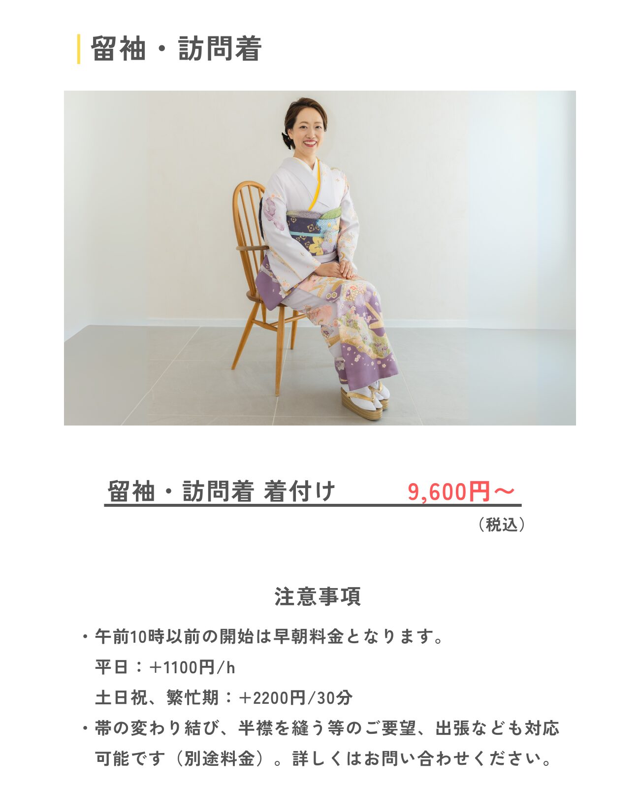 通常時(成人式以外)の振袖着付け料金は13,200円〜となります。出張も可能です。
